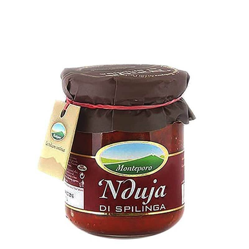 ’Nduja calabrese di Spilinga è un insaccato prodotto con carne di maiale e tanto peperoncino. Famosa per il suo sapore estremamente piccante. La carne ed il peperoncino impastati con un po' di sale, in questa versione vengono presentati come un impasto cremoso conservato in barattolo di vetro. Ideale da spalmare.